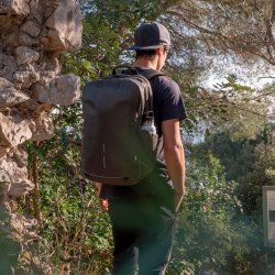 Hecha a partir de 25 botellas recicladas, la mochila para ordenador L, gracias a su material ligero y repelente al agua permite una agilidad óptima en tus viajes y negocios. Multifuncional, puedes llevarla contigo a cualquier lugar y tener las manos libres para que puedas usarlas para lo que quieras.
