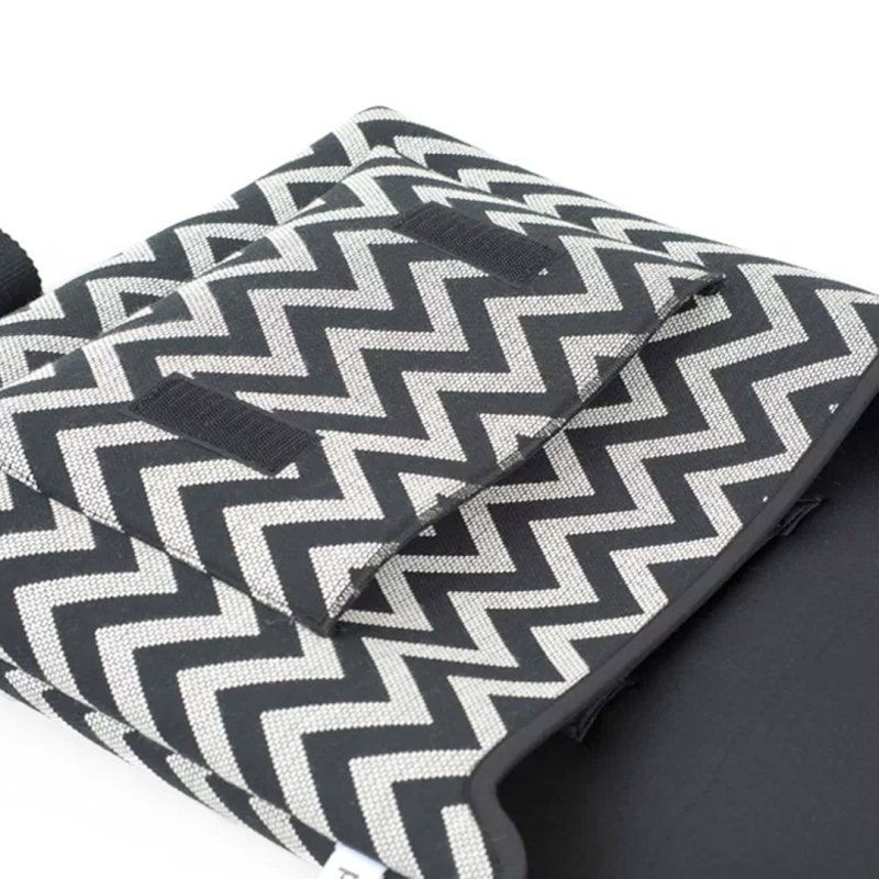 Versátil portabilidad: asa deslizante continua alrededor del borde, bolsillo negro con cremallera invertida