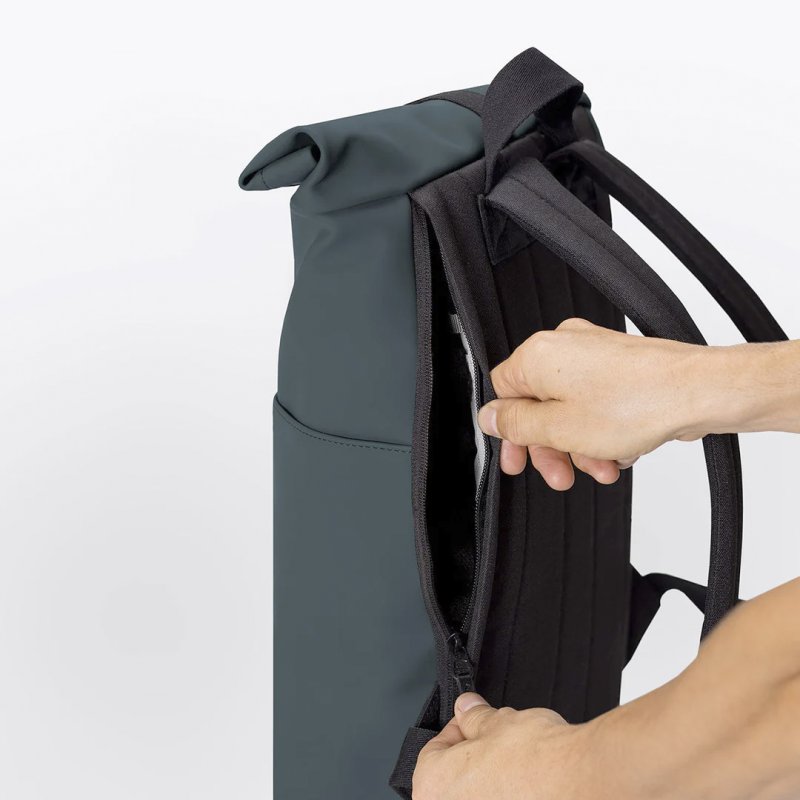 Esta mochila minimalista es la versión más pequeña de Hajo Mini Mochila (alrededor de un cuarto más pequeño). Ya sea en la carretera en bicicleta, compras o en la vida nocturna, es adecuada para cualquier ocasión. La parte superior se cierra con un cierre de gancho y bucle y permite un llenado práctico de la mochila Hajo Macro que cuenta con un compartimento con cremallera en e