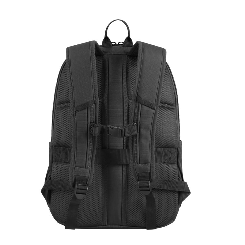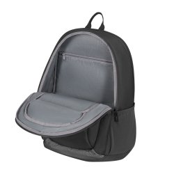 Mochila práctica y resistente, ideal para transportar el material escolar y los efectos personales. Dispone de bosillo frontal, de bolsillo trasero de seguridad y de bolsillos laterales, uno de ellos con banda elástica. Parte trasera acolchada para mayor confort. Tirantes ajustables acolchados con detalles reflectantes. Bolsillo interior para protátil de 15". Dispone de asas con broche metálico. A