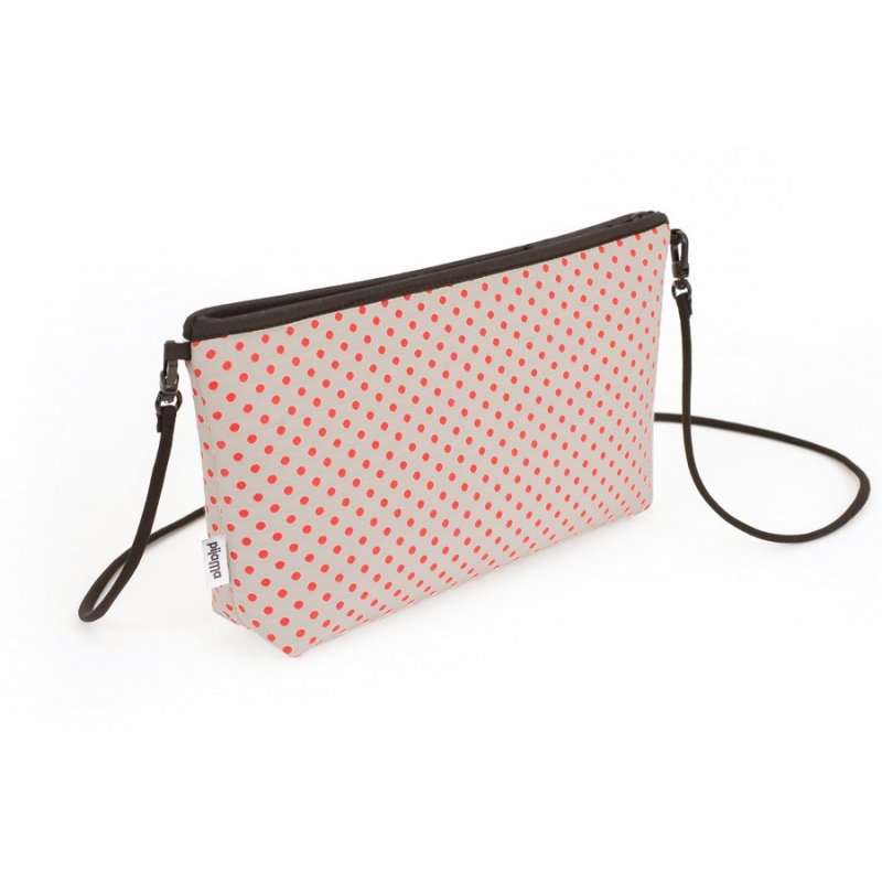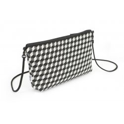shoulder bag with detachable thin shoulder strap and ykk zip closure. it has black synthetic jersey lining inside and 3mm neoprene glued to external fabric