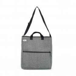shoulder bag with detachable thin shoulder strap and ykk zip closure. it has black synthetic jersey lining inside and 3mm neoprene glued to external fabric