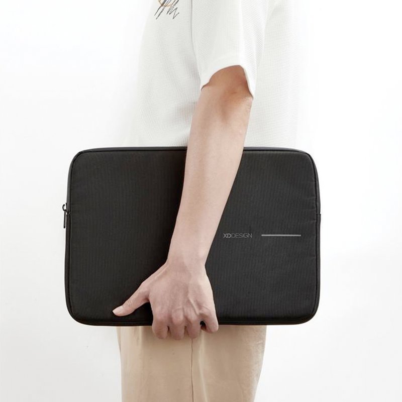 La funda para ordenador portátil de 16" de XD Design en negro clásico ofrece una protección confiable para tu ordenador. Confeccionada con precisión con tela rPET 1200D con un acabado repelente al agua y con un forro polar gris fresco, fortalece tu dispositivo contra los elementos cotidianos. La cremallera impermeable mejora la resistencia. Elaborada teniendo en