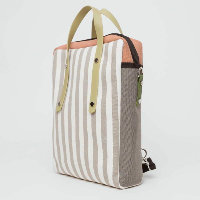 Este versátil bolso está fabricado en España en colaboración con Anuscas Family. Fabricado con materiales reciclados, puede llevarse como bolso de mano, bandolera o como mochila. Marrón y lila. Con el algodón reciclado, ayudamos a preservar las tierras de cultivo y damos una segunda vida a los recortes de tela.