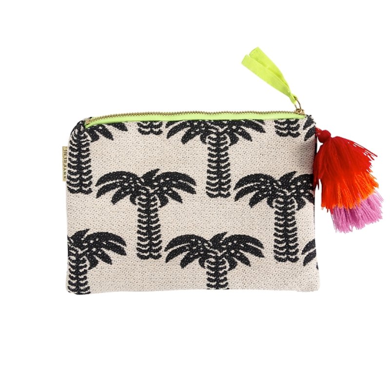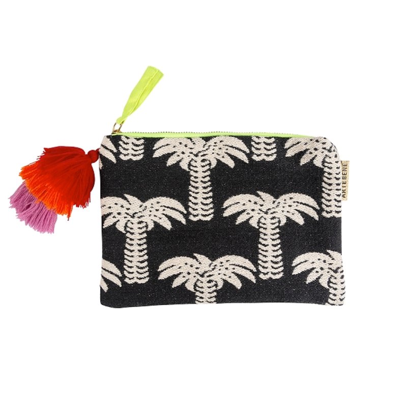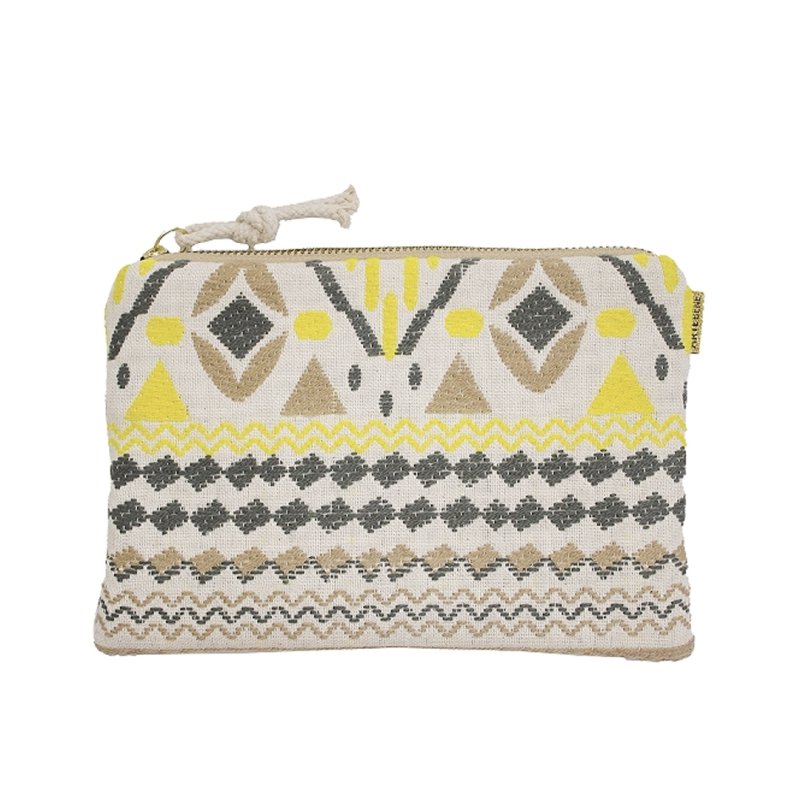 Neceser de algodón reciclado con forro liso, bolsillo interior y cierre de cremallera, adornado con un estampado multicolor. El algodón reciclado nos permite preservar los terrenos agrícolas y dar una nueva vida a los retales de materiales.