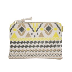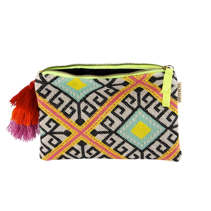 MAJOIE bolso cosmético tejido ethno Espacio suficiente para encubridor, polvo, lápiz labial, máscara y todos los productos de belleza Fácil de cerrar con cremallera Con borlas multicolores 100% hecho a mano - mano de obra de alta calidad