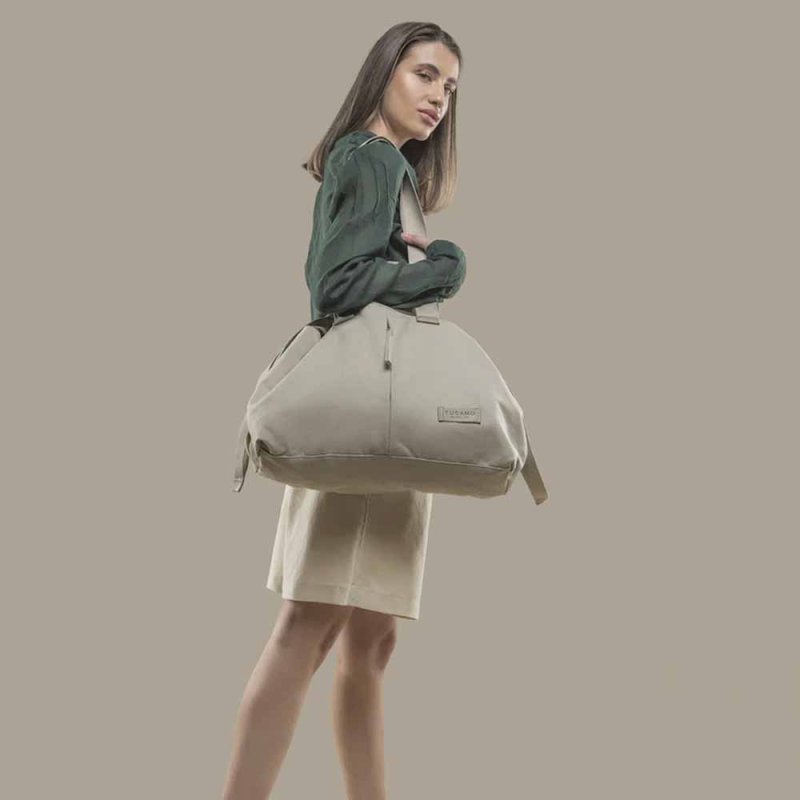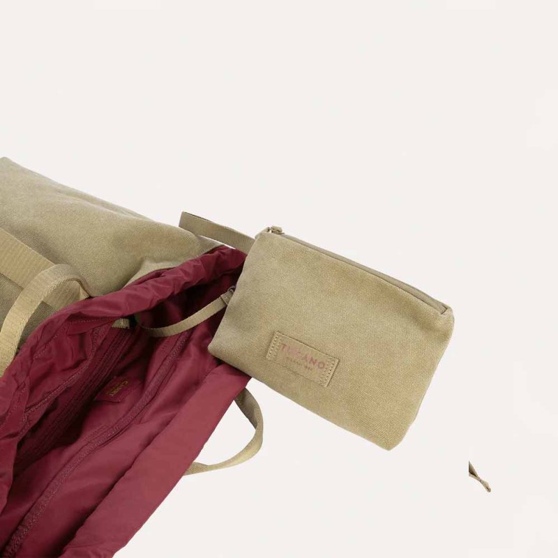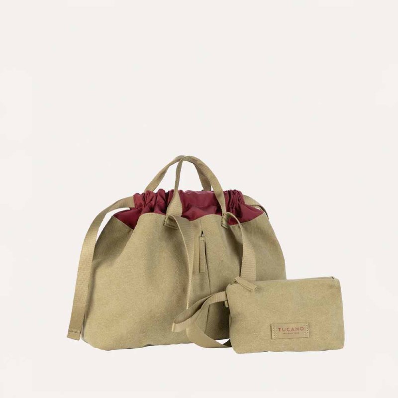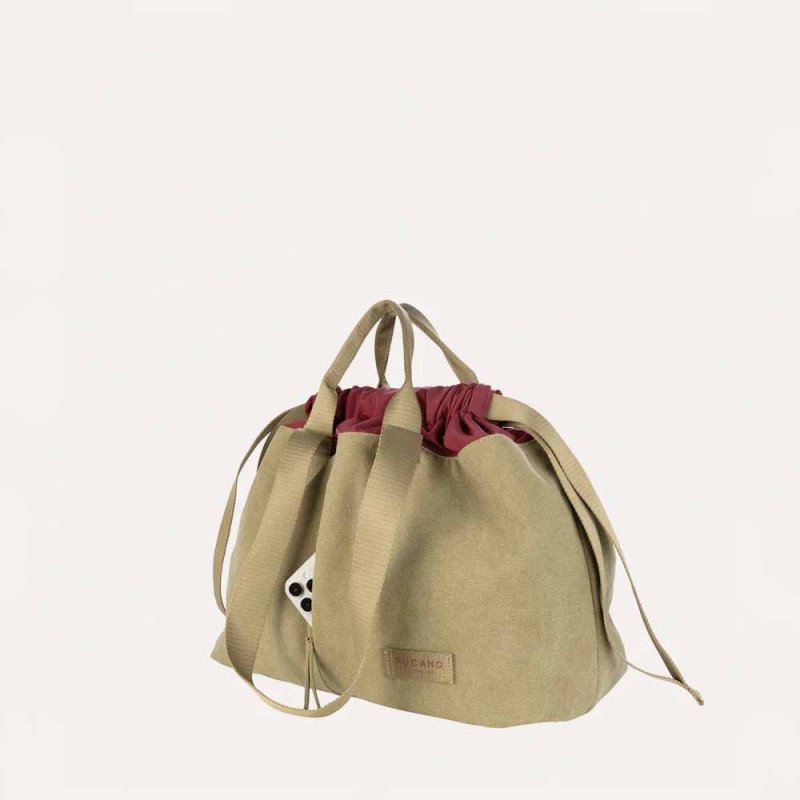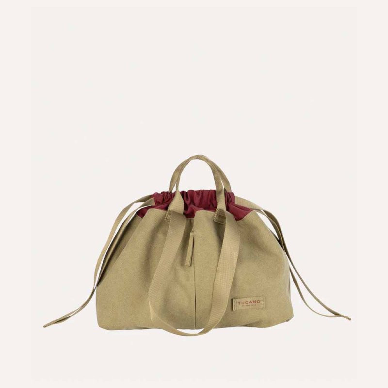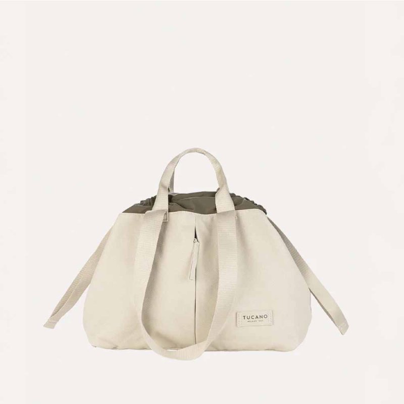 Bolso grande de lona de algodón con asa de doble cinta y cierre de cordón. El forro interior es de tejido obtenido a partir de plástico reciclado. Con una capacidad de 21 litros, la bolsa ofrece un amplio espacio para necesidades de viaje rápidas e informales. Equipada con un práctico bolsillo interior y un gran bolsillo exterior, la bolsa Carry viene con un clutch interior extraíble.