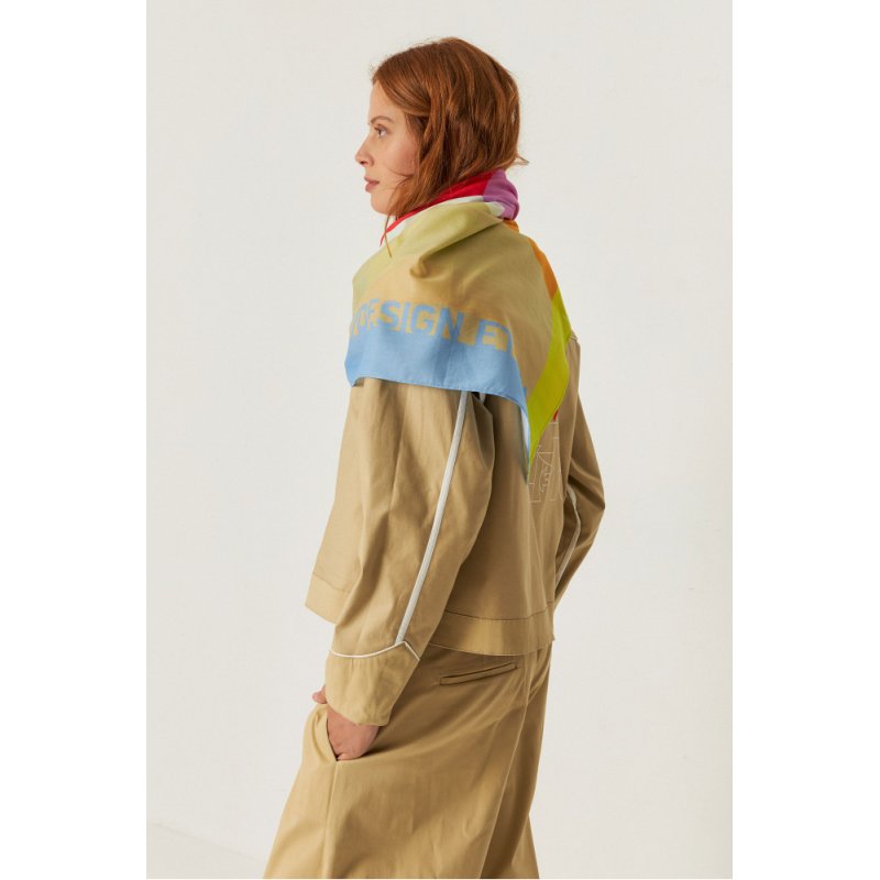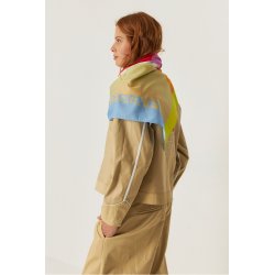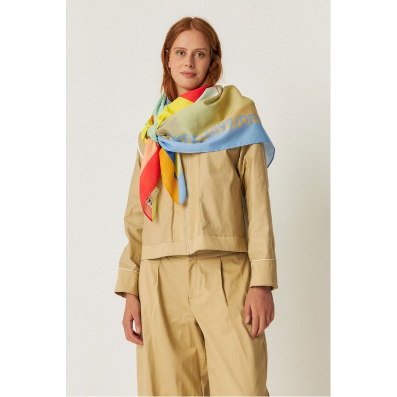 Pañuelo cuadrado grande hecho de algodón orgánico con certificado GOTS. Estampado Sueño multicolor. Estar certificados sienta genial. GOTS es el principal certificado en cuanto a la preparación de textiles hechos con fibras orgánicas.