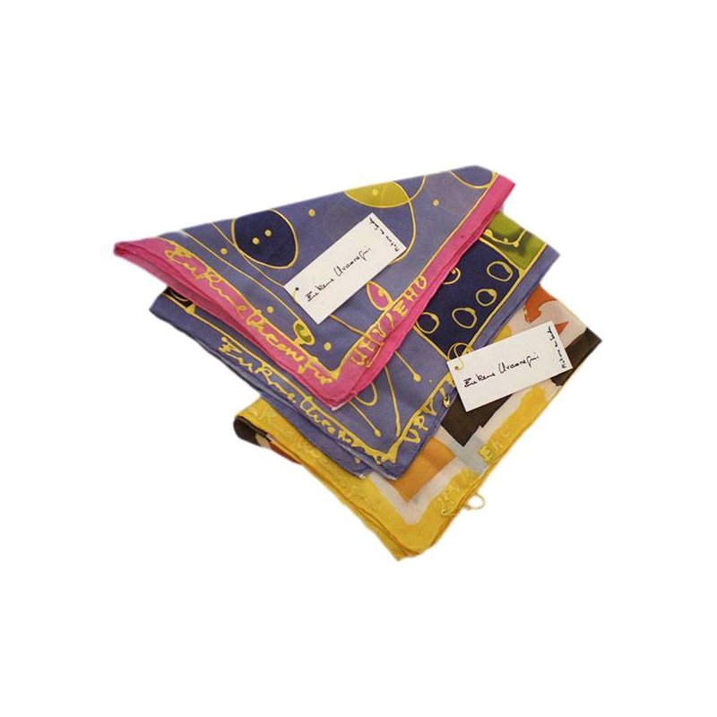 Pañuelos de seda de 55 x 55 cm pintados a mano por Eukene Urkaregi. Estos pañuelos de seda pintados a mano son piezas únicas y elegantes, ideales para regalos o eventos especiales. Cada pañuelo, con sus vibrantes colores y detallados diseños, refleja una obra de arte que aporta sofisticación y estilo. Perfectos para añadir un toque de distinción a cualquier ocasión, estos pañuelos son el complemen
