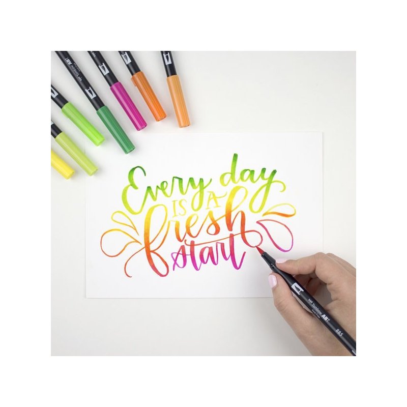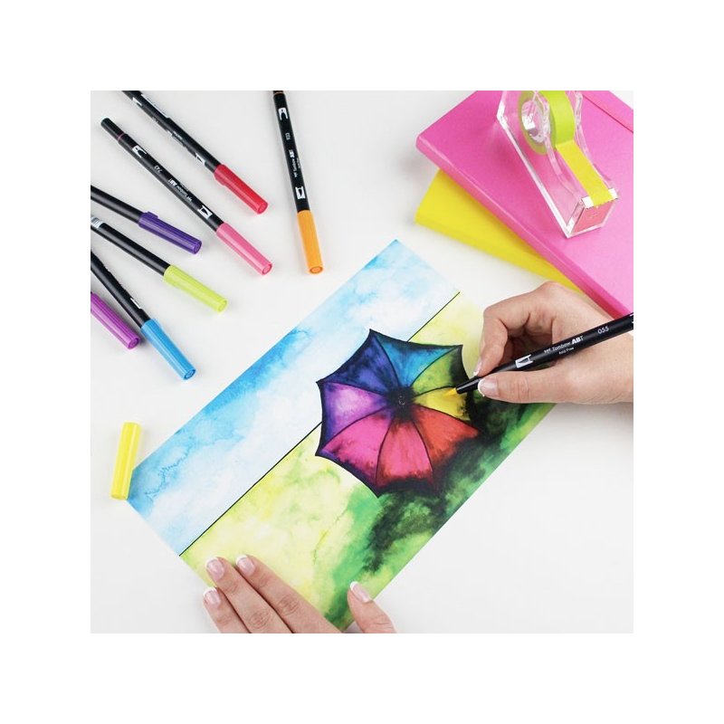 Rotuladora con doble punta (punta pincel y punta fina) Con base de agua para lettering o dibujo al agua e ilustaración. Disponible en 107 colores.