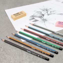 Lápices de grafito B. Mina de 2,4 mm Ø. Forma triangular ergonómica. Lagraduación B es una dureza de grafito media, recomendada para escrituray dibujo.La mina ofrece un trazo uniforme y es resistente a la rotura, gracias al sistema LPS (Lead Protection System) que protege la mina gracias a su adhesión con la madera. Madera procedente de plantaciones sostenibles.