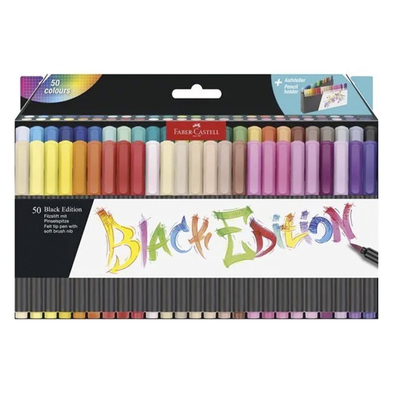 El set Black Edition Brush de Faber-Castell incluye 50 rotuladores con punta de pincel flexible