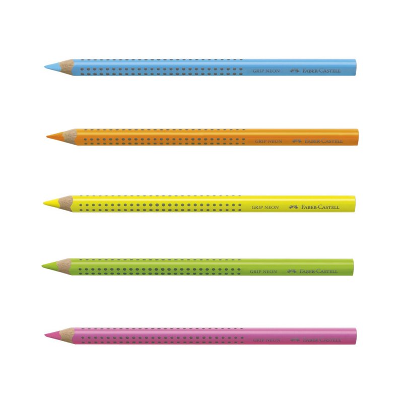 Lápiz Jumbo Faber-Castell Fluorescente, Ergonómico, con Zona de Agarre Grip, Amarillo Neón, naranja neon, azul neon y verde neon.