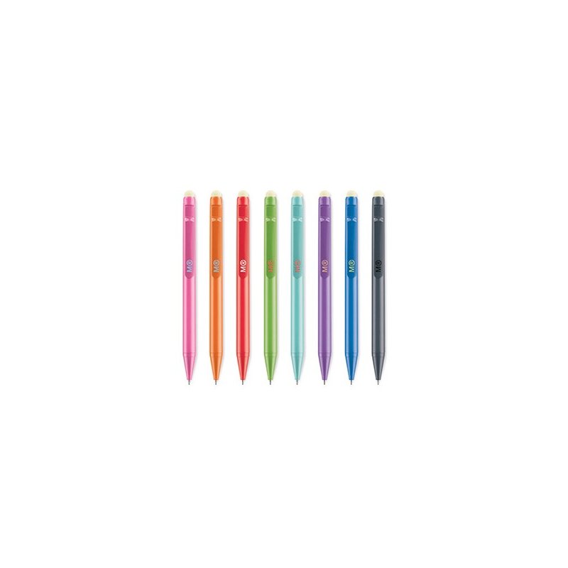 Aluminio anodizado en varios colores (grafito, azul océano, morado,verde y negro). Clip de metal, empuñadura ergonómica de plástico con recambio LAMY M 63 M.