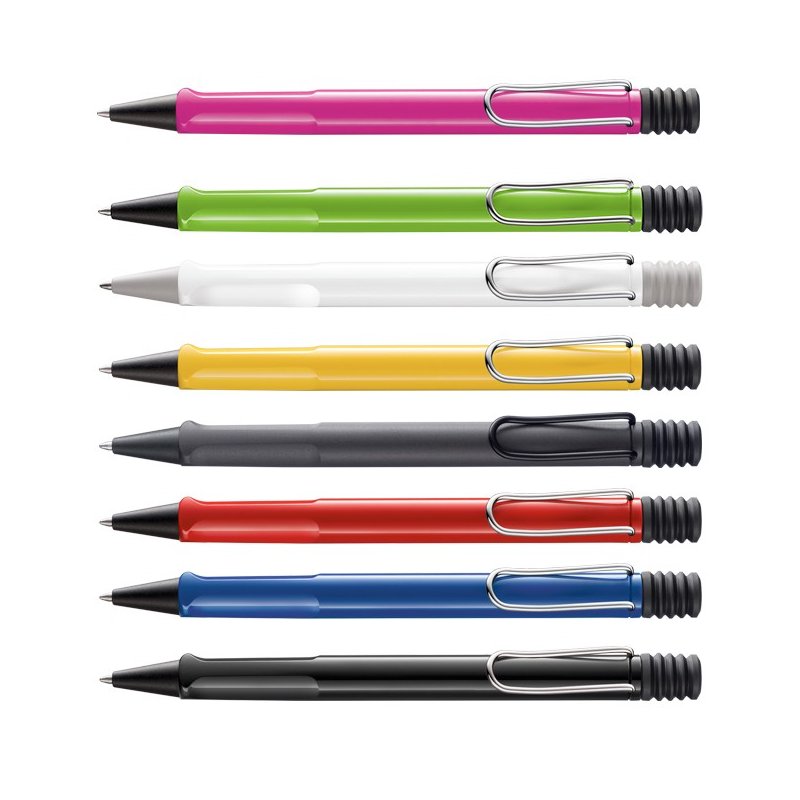 Plástico brillante, colores surtidos (rosa, azul, rojo, negro y blanco), clip de metal, empuñadura ergonómica, con recambio LAMY M 16 M.