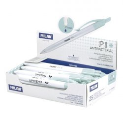 Bolígrafo P1 antibacteriano, tinta azul. Este bolígrafo inhibe y previene el crecimiento bacteriano en todo el cuerpo, gracias a los iones de plata. Ideal para mejorar la higiene en la escuela, oficina, ambientes en contacto con alimentos y entornos sanitarios
