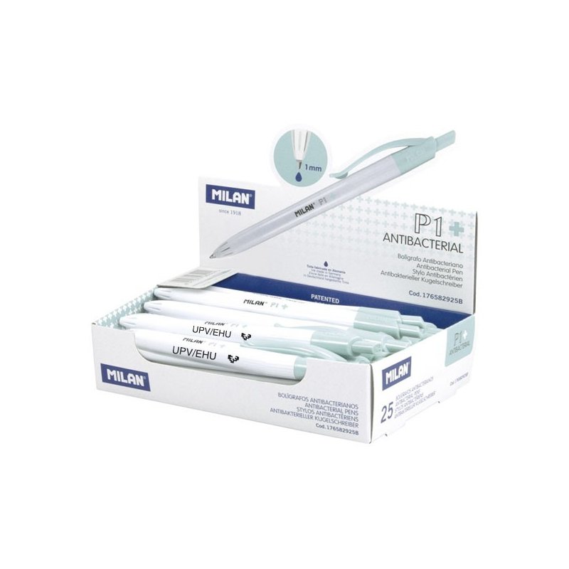 BOLÍGRAFO ANTIBACTERIANO P1 AZUL MILAN UPV/EHU
