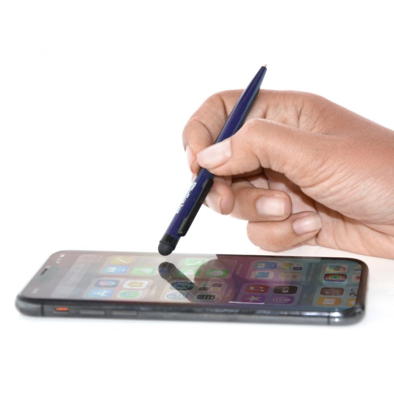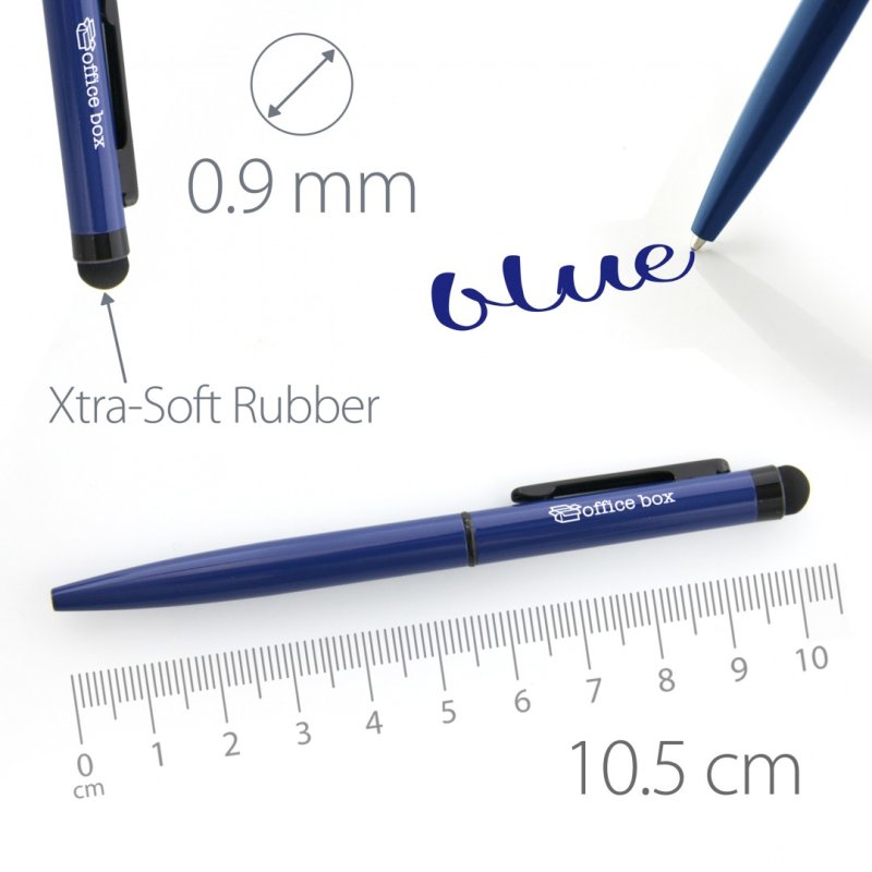 Regla de centímetros/pulgadas, destornillador ranurado Phillips, stylus plateado, mina negra, incluye dos recargas de bolígrafo, aluminio/latón/acero mate plateado.