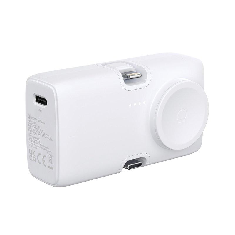 rPC ● Potencia total 20W ● Carga el teléfono hasta 1 veces ● Salida USB C ● Salida Lightning ● USB-C entrada ● Indicador de carga ● Autorizado como equipaje de mano ● Puede cargar otros dispositivos mientras se carga solo ● Carga rápida ● Carga 2 aparato(s) simultáneamente