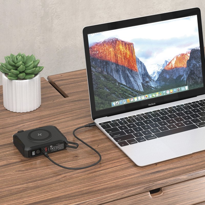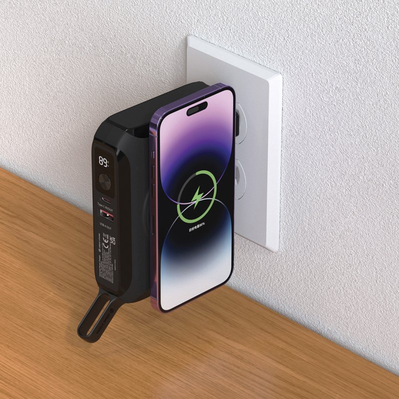 Este cargador 15W es magnético para los últimos teléfonos iOS y Android. Con una colosal capacidad de batería de 15,000 mAh y una robusta salida PD de 65W tipo C a través del cable tipo C integrado, puedes alimentar tus dispositivos a gran velocidad , incluidos los ordenadores portátiles que exigen alta potencia.