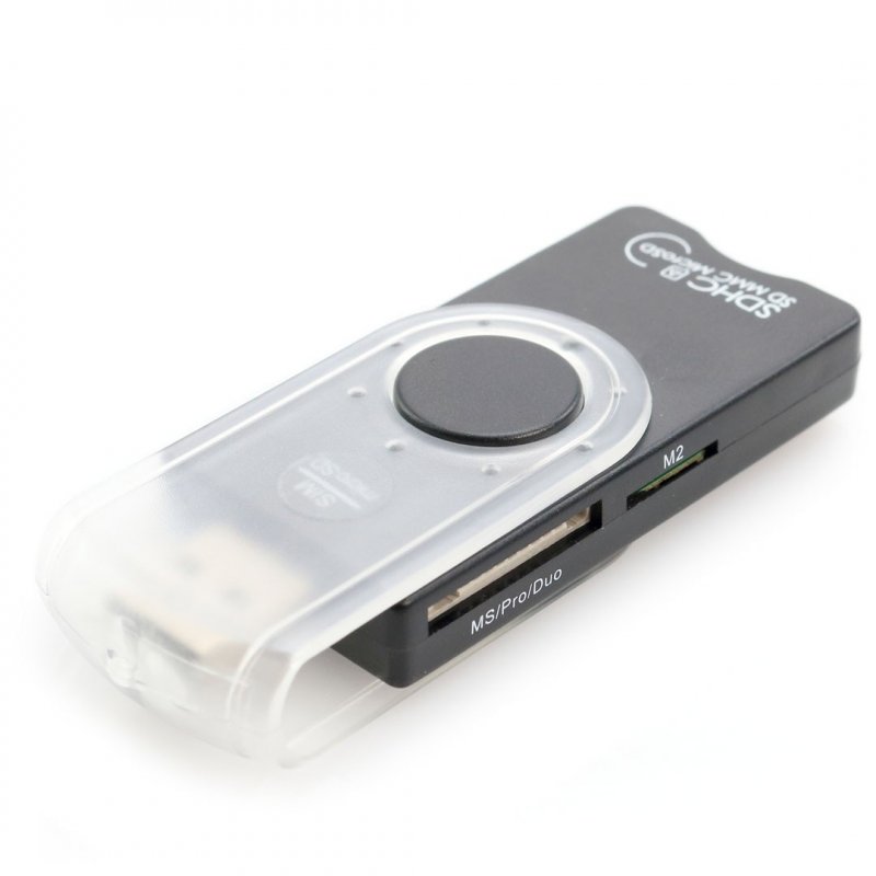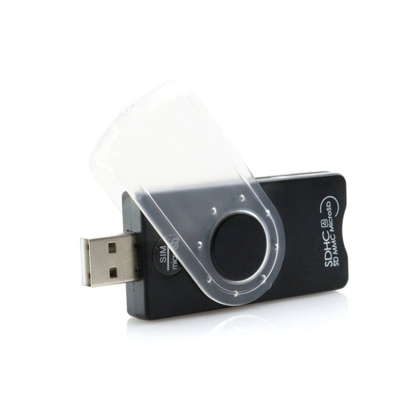 Práctico lector de Smart Card con conexión USB 2.0. De apertura giratoria y diseño minimalista, integra además ranuras para tarjetas de memoria tipo MS, M2, SD, MiniSD, SmartCard, SIM y MicroSD. Compatible con Windows y macOS. Presentado en caja individual de cartón en acabado negro satinado.