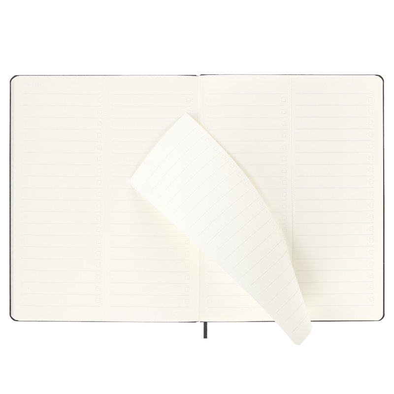 Formato, Días de la semana a la izquierda, hoja rayada en la derecha.