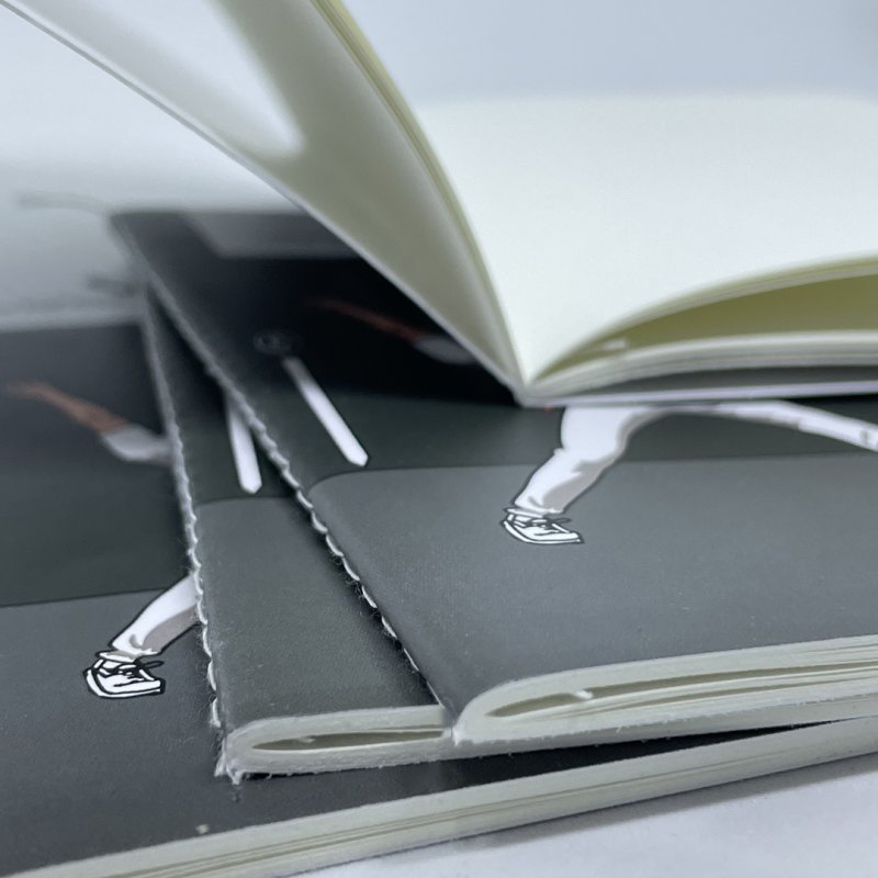 Libreta con cubierta negra o marrón natural con 70 páginas de papel reciclado y un bolígrafo reciclado biodegradable de tinta azul.