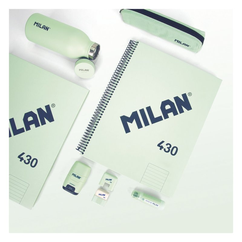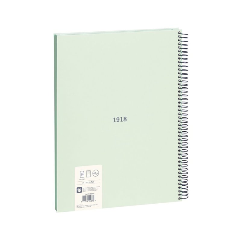 Metalezko espiral sendo eta malgua duen libreta, segurtasun-itxitura duena, arropa ez krokatzeko, paper llineadun, 80 orri, A4. Kartoi zurruneko estalkia eta MILAN logotipo distiratsua erliebean. Kalitate handiko 95 gr/m²-ko papera, mikrozulatua eta 4 zulagailu dituena. Ebaketa-abiarazlea, orri bakoitza errazago bereizteko. 1918 seriea, 1918tik Espainian fabrikatutako MILAN borragomen jatorrizko k