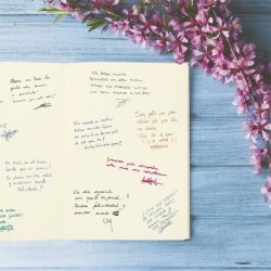 Ekitaldi berezietarako sinadura-liburua: jaiak, ospakizunak, urtebetetzeak, jaunartzeak, oturuntzak eta hotelak, landa-etxeak, upeltegiak, jatetxeak eta abar. Kalitatezko produktua, diseinu dotorearekin. Azaleko eta puntuzko imitaziozko estalki sintetikoa. Marfil koloreko orriak, bolaluma, roller eta abarrekin idazteko egokiak. A4 210 x 297
