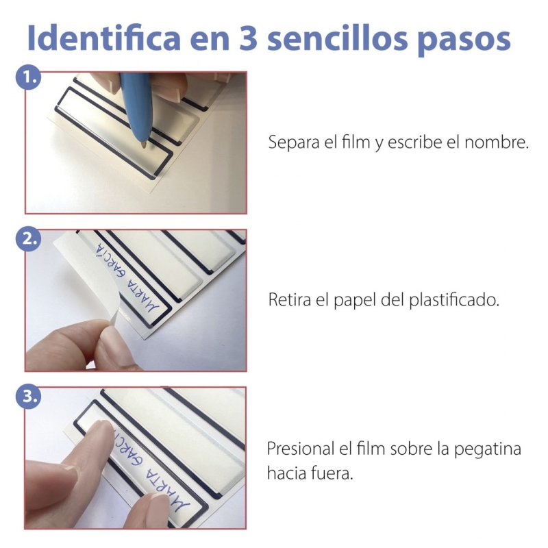 · Pertsonalizatu 3 urratsetan: idatzi, plastifikatu eta itsatsi.