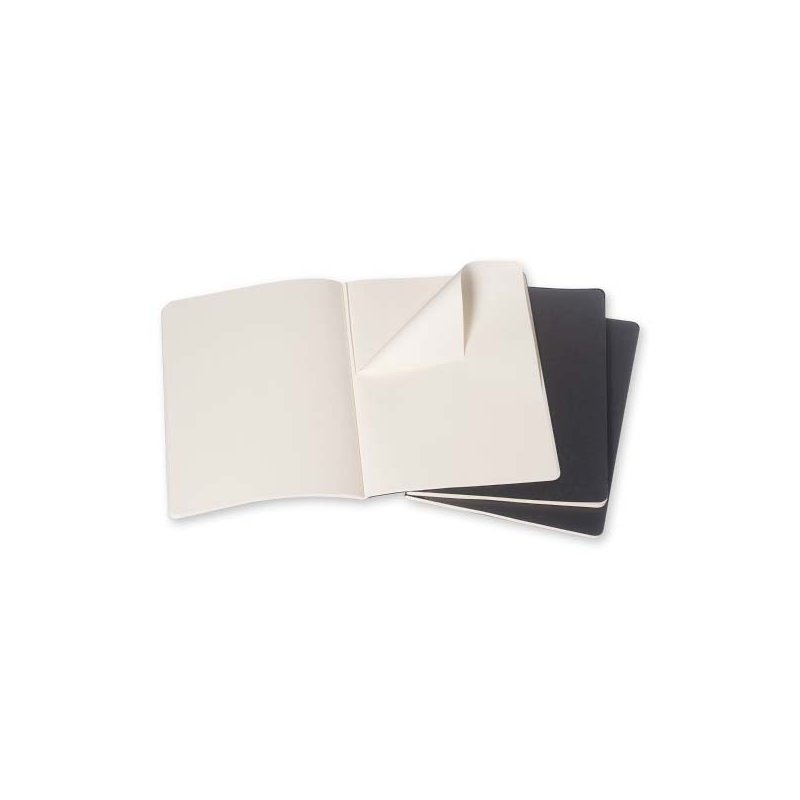 Las últimas 16 hojas se pueden separar. En el interior se encuentra un amplio bolsillo ideal para hojas y recortes, que contiene la historia de Moleskine. Papel sin cloro y páginas de rayas. Set de 3.