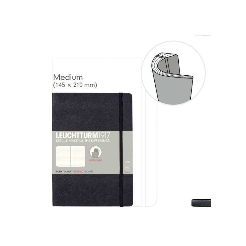 Nuestras libretas Tapa Blanda Medium tienen una cubierta flexible que permite doblarlas. Tienen 121 páginas con papel de 80 g / m² y todas las mismas características que las de tapa dura. Nuestros Detalles: