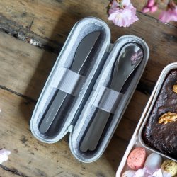 Para comer fuera con la misma comodidad que en casa, puedes contar con los cubiertos lunch box MB Slim Nest. Encontrarás un tenedor, una cuchara y un cuchillo.