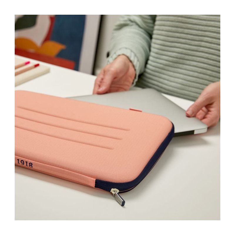 Babes handia eskaintzen duen ordenagailu eramangarri erdizurrunarentzako zorroa. 1918 seriea. MILAN ezabatzeko gomen jatorrizko kolore eta diseinuan oinarritua. Kremaileradun poltsiko batekin, kable edo osagarri elektronikoak eramateko aproposa. Barrualdea, belus-forruz hornitua, ordenagailua balizko urraduretatik babesten duena. 'Ripstop' kanpoko ehuna: arina eta hausturarekiko eta urradurekiko e