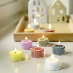 Produktuaren xehetasunak: Bidezko merkataritza, koloratzaile ekologikoz koloreztatua, parafinarik gabea, erredura-denbora: gutxi gorabehera. 3 ordu Materiala: estearina beganozko argizaria, kotoi puruz egindako metxa, plastiko gardenez estalia Neurriak: H 2 cm, Ø 3,8 cm