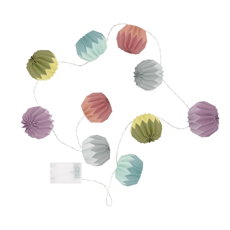 LED maitagarrien argiak paperezko 10 apaingarrirekin, 3AA baterietarako bateria-konpartimentua (ez dago barne) Materiala: Papera, plastikoa Neurriak: Apaingarriak: 7 x 6 cm, maitagarrien argien luzera: 1,50 m