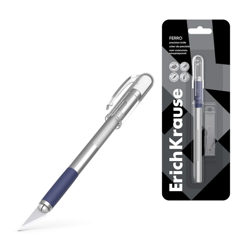 Doitasun-labanak (bisturia), paperak garbi eta zehatz ebakitzeko. Gorputza erabat metalikoa da, eta gomazko heldulekua eta babes-estalkia ditu. Higadurarekiko erresistentea den altzairuzko hortz segmentatu batekin dator, bi aldeetatik zorroztuta. ErichKrause Ferro papertegiko aiztoa (blister 1 ale)