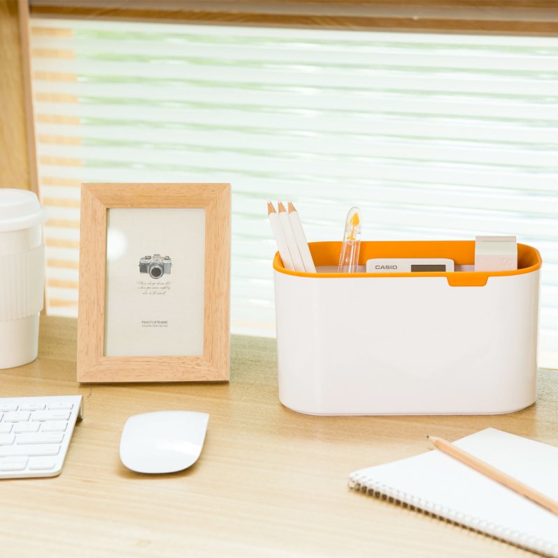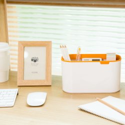 Icon Kutxatila Laranja ezin hobea da edozein idazmahaitarako, bere tamaina eskuzabalak hainbat material era antolatuan gordetzeko aukera ematen baitu.