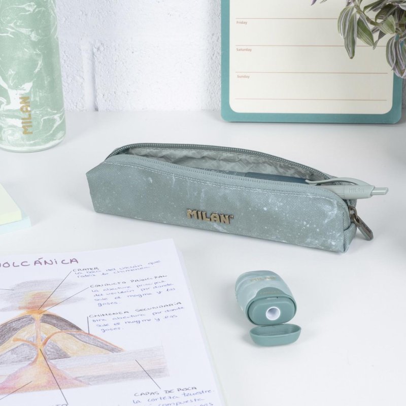 Estutxe biribila, idazteko materialak, eskolako hornidurak eta marrazketa-artikuluak gordetzeko. Era guztietako kable txikietarako edo makillajerako ere erabil daiteke. Estutxea PVCz egina dago, eta ukitzean atsegina eta leuna da. Estutxea pertsonalizatu nahi izanez gero gainean idatz daiteke. Erosoa eta dibertigarria! Erraz egokitzen da edozein poltsa edo poltsatan. Neurriak: 22x6x6 cm