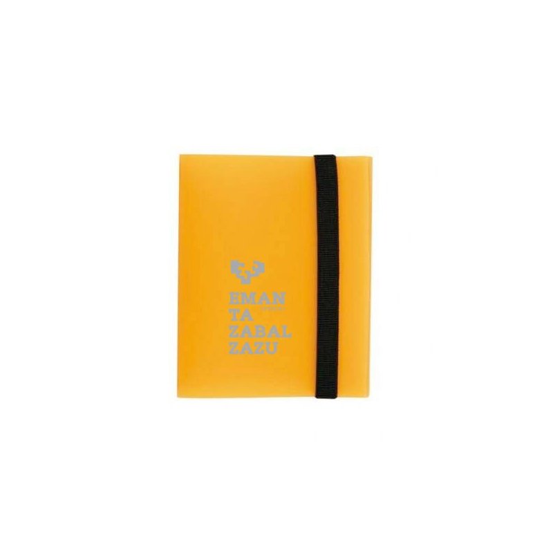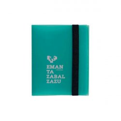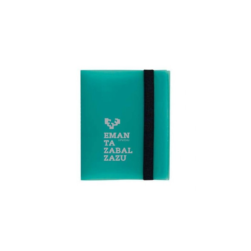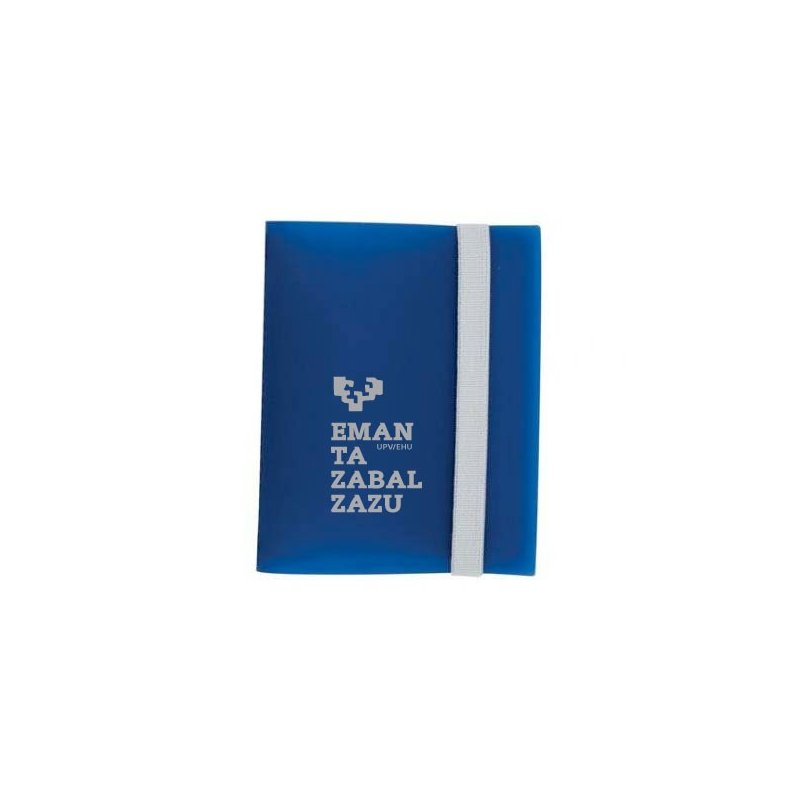 Non-woven materialez egindako boligrafo zorroa, Eman ta zabal zazu leloa eta EHUren logo berria dituena. Arina, praktikoa eta erakunde-nortasuna duena.