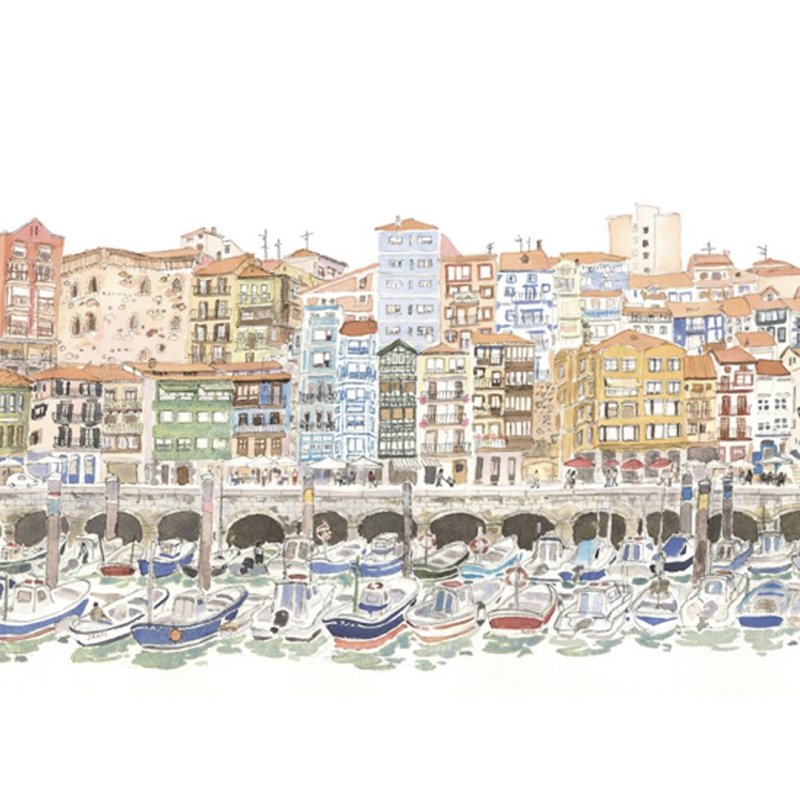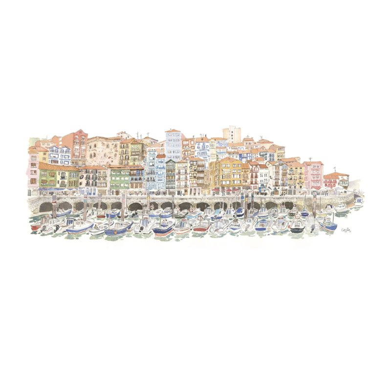 Elena Ciordiaren "Bermeo Puerto" lamina 16,1 x 31,5 cm