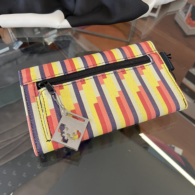 Kotoi birziklatuz egindako zorroa, kolore bakarrez forratua; txartelen atala du, krisket botoia eta lore estanpatu koloretsua. Kotoi birziklatuarekin, labore lurrak zaintzen laguntzen dugu eta bigarren erabilera bat ematen diegu ehun zatiei.