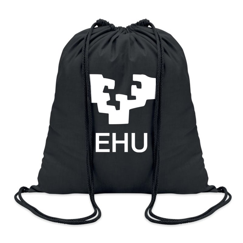Kotoizko motxila beltza (100 gr/m²), arina eta sendoa, lokarri doigarriekin. Diseinu sinple eta praktikoak unibertsitatearen logoa du aurrealdean, zure gauzak estilo eta erraztasunez eramateko aproposa. Ezin hobea eguneroko erabilerarako edo jarduera akademikoetarako.