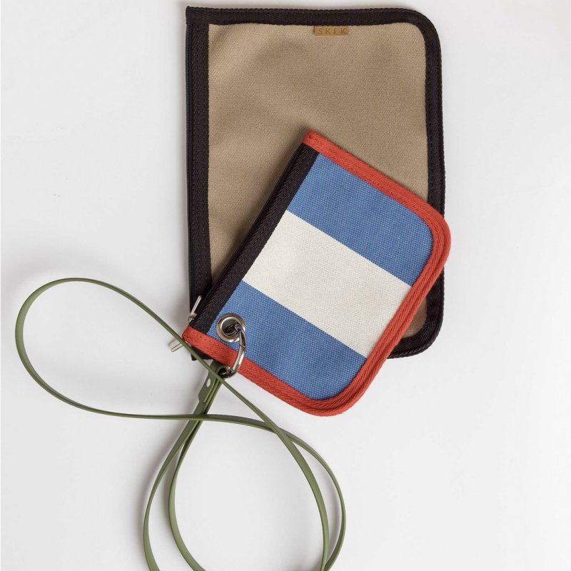 Poltsa xehe marradun ausarta, urdin biziko heldulekuak eta bi sakela dituena. ANUSCAS FAMILYrekin egindako kolaborazioa, familiako lantegi txiki bat Sevillan (Espainia). Material birziklatuta eta birziklagarria erabiltzen dute ehunak ekoizteko, guztiak ere eskuz eginak horrek piezari ematen dion balio guztiarekin.