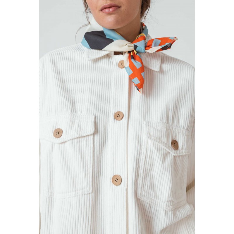 Zapi karratu zabala, GOTS ziurtagiria duen kotoi organikoarekin egina. Tokioko argien estanpatu koloretsua. Ziurtagiria izatea bada jantzia izatea. GOTS arau liderra da zuntz organikoz egindako ehunen prozesamenduan.
