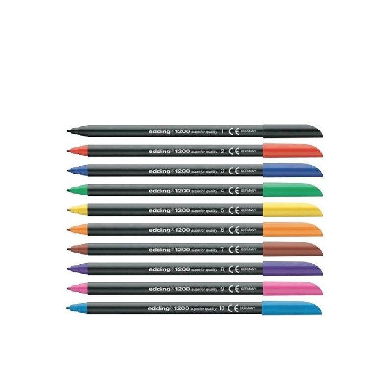 Portatodo de 10 rotuladores 1200 para escritura, bocetos y diseños sobre papel de color claro, punta redonda de 1mm. Surtidos.