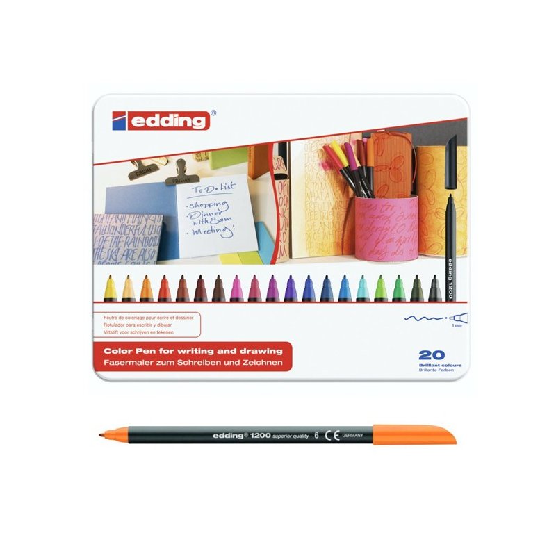 CAJA METÁLICA 20 ROTULADORES SURTIDO EDDING 1200
