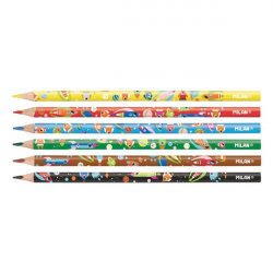 48 lápices de colores con mina de gran grosor de 3,5 mm Ø, hexagonales. Contiene 2 colores metalizados: plata y oro. La mina ofrece un trazo uniforme y es resistente a la rotura, debido al sistema LPS (Lead Protection System) que protege la mina gracias a su adhesión con la madera. Madera procedente de plantaciones sostenibles.