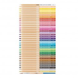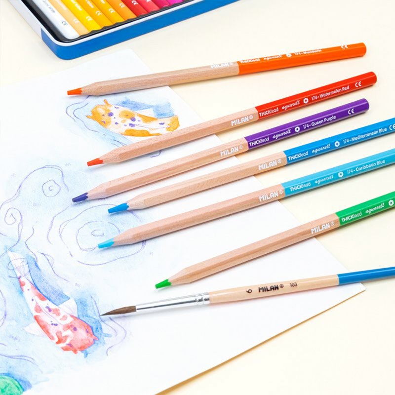 36 arkatz akuarelagarri, 3,5 mm Ø lodi den minarekin, hexagonalak. Bi kolore metalizatu ditu: zilarra eta urrea. Minak marra uniforme bat du, eta hausturarekiko erresistentea da, LPS (Lead Protection System) sistemaren ondorioz; sistema horrek mina babesten du, zurarekin bat egiten baitu. Landaketa iraunkorretatik datorren zura. Zur naturalezko akabera, kolore bakoitzak bere izena du. Metalezko ka