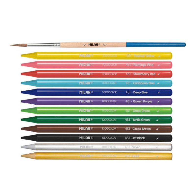 Koloretako arkatzak, zurik gabeak, Todocolor. Minaren% 100 uretakoa da. Arte Ederretarako bereziki egokiak diren arkatzak, paperean eta akuarelatu ahal izateko. Pigmentua zuzenean arkatzetik pintzelaren puntarekin hartzen da, mina bustitzen da eta paper hezearen gainean marraztu eta/edo margotu daiteke. Hautsetik eta txirbiletatik arkatza zorroztu eta akuarelatu ere egin daiteke. Sekzio biribileko